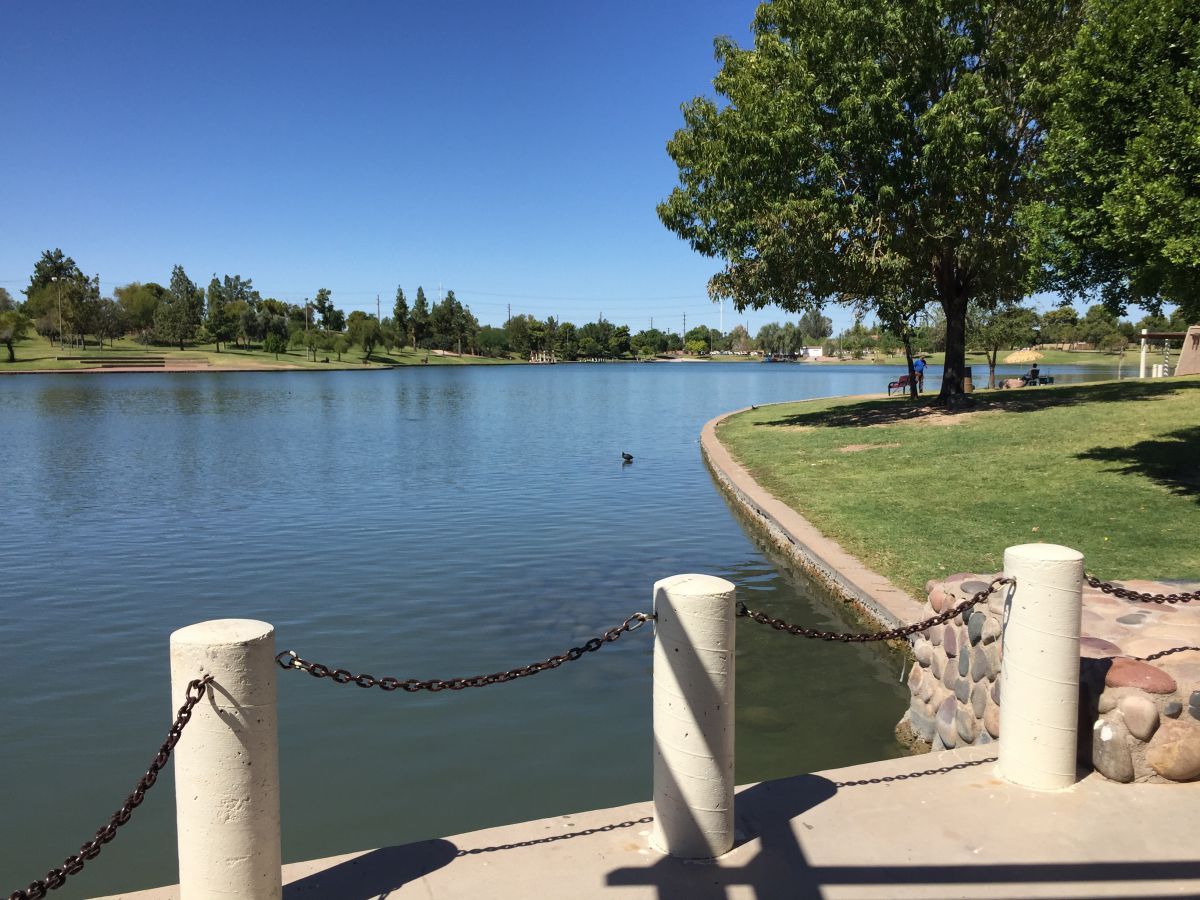 Jan and I found a nice park near a lake where we are sitting and resting while we're waiting for Sara and Sam to finish getting their nails done
